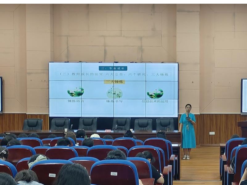 黎懿是小学正高级教师、四川省特级教师、四川省教书育人名师、广安市名师。她致力于小学语文学科教学研究,秉承“尚美”的教学理念,开展有广度、有高度、有深度、有温度的“四度课堂”教学实践,让学生在学习中感受美、体验美、欣赏美、创造美。本次讲座黎懿分别从教育理念、管理能力、专业发展三个方面为同学们传授经验、解疑答惑。她告诉同学们贯彻“以生为本”的学生观,牢记“立德树人”的教育观,引领“智创未来”的创新关;在管理方面做到仁教、境教、勤教;在教师专业发展方面为同学们总结了“六大忠告”(先站住再站高、先仿照再创造、先求同再求异、先解决心情再解决事情、先成长再成功、先升值再升职)、“六个研究”(研究自己、研究学生、研究教材、研究教学、研究作业、研究考试)、“三大锤炼”(锤炼语言、锤炼书写、信息技术的运用)。多年来的教育教学和管理积淀,使她能凭借扎实的理论功底和丰富的实践经验来解决小学语文教学中的各种教育教学问题,能够高水平地鼓励指导学生,引导学生成长成才,是广大学生的理想导师。