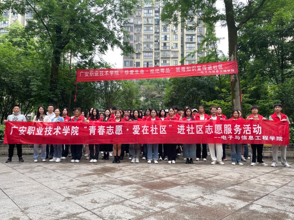 为深入学习贯彻习近平总书记对深入开展学雷锋活动作出的重要指示精神,积极响应四川省大学生志愿服务社区行动,5月20日上午,电子与信息工程学院团总支组织了近50名青年志愿者,走进广安区中桥街道莲花社区鹭岛国际小区开展“青春志愿·爱在社区”志愿服务活动,活动的主题为“珍爱生命·拒绝毒品”。学院党总支也组织部分党员同志参加了此次活动。