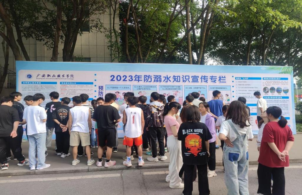 期间,各二级学院利用班会时间,组织学生学习防溺水的知识普及教育,明确要求学生不私自下水游泳,不擅自与他人结伴游泳,不在无家长或老师的带领下游泳,不到无安全设施、无救援人员、不熟悉的水域游泳,发现同伴溺水时,不盲目施救,通过此次教育,提高了学生的防溺水安全意识和自我防护能力。保卫处在校内人员密集的路口搭建宣传桁架、展台和制作专题展板进行集中宣传活动,发放宣传册页,使每位同学了解并掌握防溺水知识,确保人人受到教育;同时,保卫处修复、完善了江边警示标志,加强了保安对渠江学校段的巡查力度,劝阻、告诫同学们不到渠江游泳、玩耍,严防溺水事件发生。学校还通过校园广播、电子显示屏、悬挂横幅等宣传方式,为整个宣传教育活动营造了良好氛围。