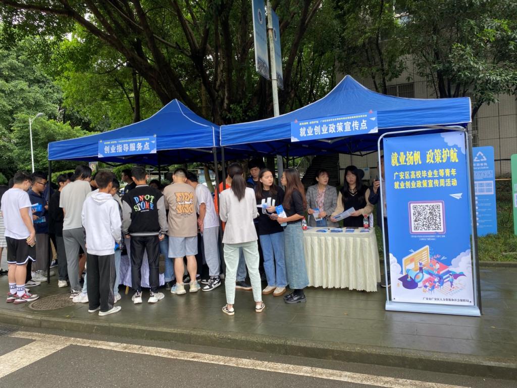 为深入宣传高校毕业生就业创业政策,帮助高校毕业生了解各项就业创业优惠政策,助推政策进一步落地见效,6月5日上午,广安区人力资源和社会保障局组织创业导师和业务骨干到校开展创业指导和就业创业政策宣传活动,现场进行就业创业政策解读,并为有创业意愿的学生进行创业指导,发放就业创业政策宣传手册1700余份。