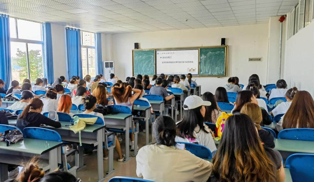 会上,吴黎明通过典型案例从离校交通安全、住宿安全、防诈骗、防盗窃和防抢劫、防网贷以及网络安全等方面给同学们进行了安全教育。罗巧围绕“实习目的、实习内容、实习注意事项”三个方面对实习工作做了安排和部署。实习生代表黄盈盈同学做了很好的交流发言,并带领全体同学进行了医学生誓言宣誓。