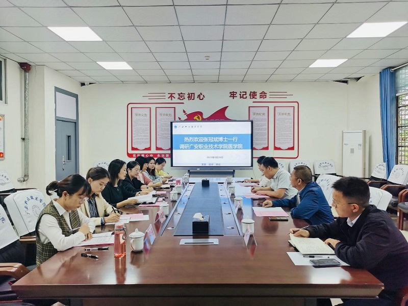 广安市人民政府驻成都办事处二级调研员张卫、四级调研员张丽,kaiyun登录中国入口登录对外交流与合作处副处长彭丽、组织部何跃文、医学院院长杨书琴、副院长罗巧陪同调研,医学院教学科研部、实训中心、教研室相关人员参加了座谈会。