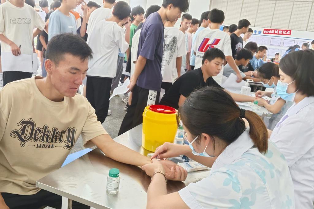 新生入学体检分为结核病筛查及常规体检两个板块7个项目,分两个批次分别于9月军训期间和10月中旬组织进行。为不影响新生军训和体检工作的顺利进行,检查前,学工部(重传办)提前联系检查单位,合理配置了医疗检查队伍,将体检设备搬至校内为新生开展体检工作,有效避免学生在往返医院检查路途中出现交通安全隐患;在收集学生基本信息过程中,屏蔽学生身份重要信息,保护学生隐私,合理制定体检方案,精心布置体检场地,合理优化体检流程,协调做好体检现场布置。体检过程中,学工部(重传办)安排学生志愿者维护秩序,引领解答,医务人员认真负责,整个体检工作秩序井然。体检工作结束后,学工部(重传办)协调医院共同做好新生体检档案收集、汇总,对体检异常学生安排其进一步检查,对漏检、补录新生安排在10月中旬第二批次进行,真正做到了新生“入学必检、转入必检”,结核病筛查率达到100%,以确保学生生命健康安全。