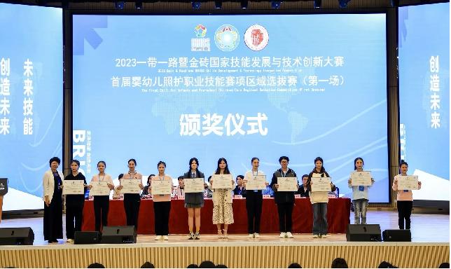 本次大赛按照2023一带一路暨金砖国家技能发展与技术创新大赛首届婴幼儿照护职业技能赛项比赛标准,设置了3岁以下婴幼儿的安全防护、生活照料、日常保健及早期发展四个模块,综合考核选手的基本知识应用能力、综合思维能力、技能操作能力、沟通交流能力和人文关怀素养等。医学院选派2名2022级护理专业学生参加,经过3天的激烈角逐,我院刘宇佳同学获得二等奖,杨玲同学获得三等奖。