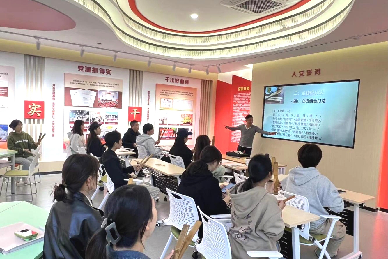 近日,师范学院在岳秀楼开展为期四天的“广安区2023曲艺传承(四川金钱板)培训”的讲座。由kaiyun官网音乐教师、广安区曲艺家协会副主席、广安区曲艺领军人才胡俊杰老师主讲,师范学院“四川金钱板大师工作室”的学生和广安区创“全国曲艺之乡”选拔出的“曲艺(金钱板)骨干”参加了此次培训。