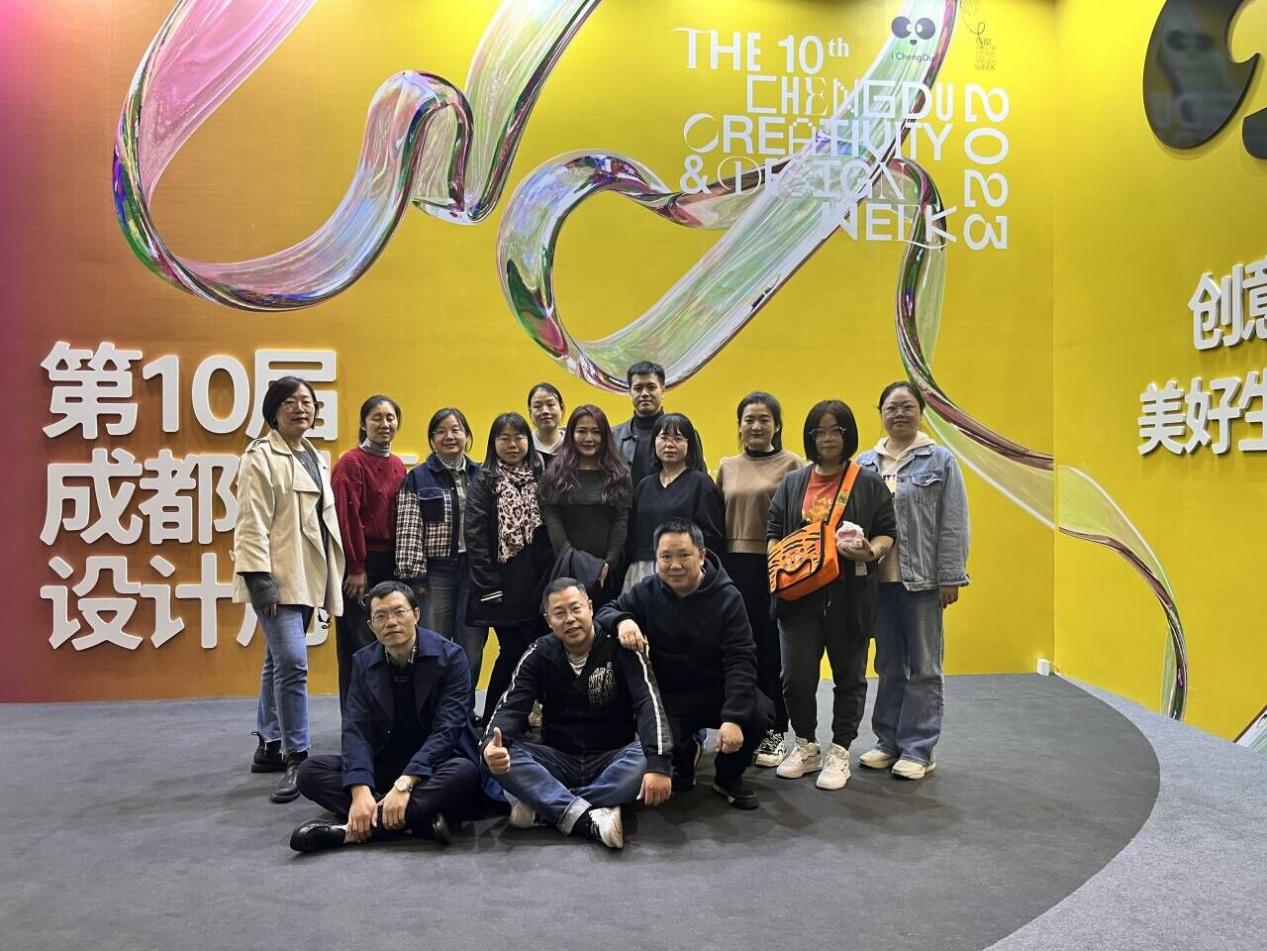 2023年11月11日—12日学院设计与传媒教研室和美术学教研室组织14名教师赴成都开展以“参观学习第十届成都创意设计周和'时间引力'—2023成都双年展”为主题的联合教研活动。