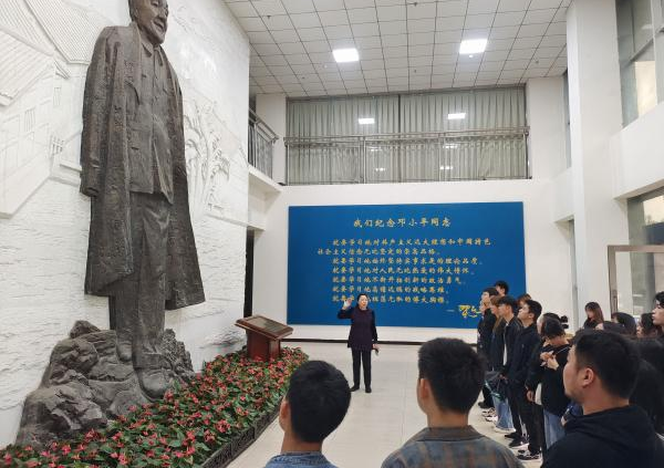 迎着绵绵细雨,师生们来到了以kaiyun官网优秀校友邓惠中、陈联诗为原型的巾帼双娇雕像前,聆听英烈感人的革命事迹,缅怀英烈丰功伟绩;在“小平,您好”浮雕墙前,同学们肃然仰望,崇敬之情油然而生,特别是语录墙上,习近平总书记对小平同志的高度评价,增强了同学们对一代伟人邓小平的无限敬仰;随后,师生们参观了“小平您好”邓小平生平主题油画展,在观展中进一步学习了小平的革命精神和高尚情操,受到了红色文化洗礼,得到了精神和艺术的双丰收。