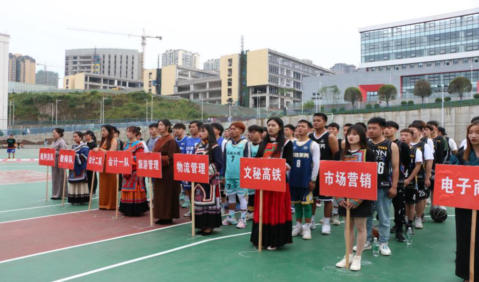开幕式在庄严的国歌声中拉开帷幕,身着少数民族服饰的同学引领8支参赛队伍迈着整齐的步伐入场。喻忠发表了热情洋溢的致辞,他指出篮球运动是展示青春活力的运动,是展示团队精神和篮球元素优化组合的运动,是竞技加拼搏、比赛加友谊、激情加汗水的运动,希望同学们秉承“团结第一、友谊第一、安全第一、比赛第二”的比赛精神,赛出风格,赛出水平!
